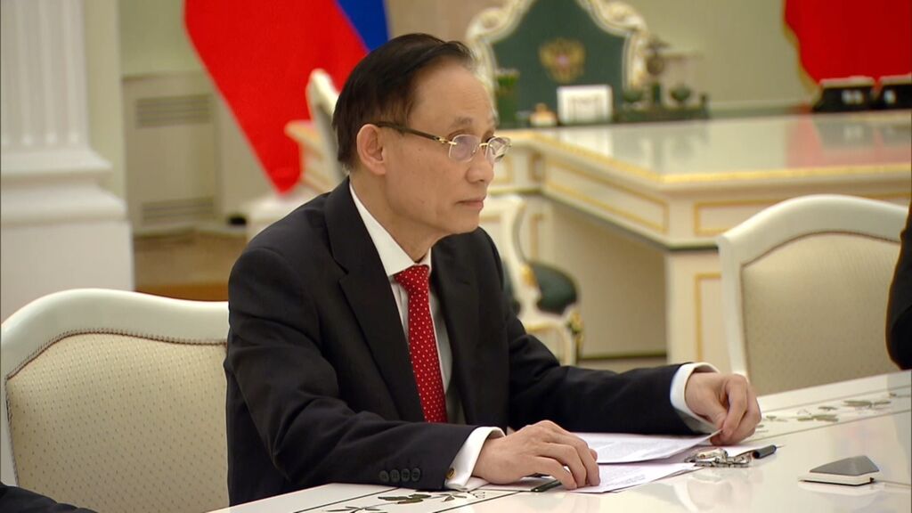 | L’envoyé spécial du secrétaire général Tô Lâm, le ministre des Affaires étrangères Lê Hoài Trung (centre, gauche), a été reçu par le président russe Vladimir Poutine (3e, droite), le 24 février à Moscou. |