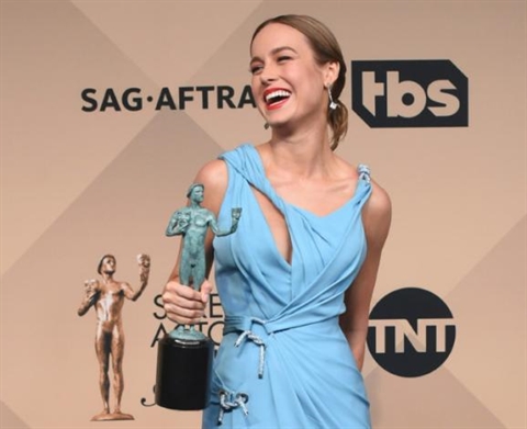 | L'actrice Brie Larson reçoit le prix de la meilleure actrice aux SAG Awards à Los Angeles, le 30 janvier 2016. |