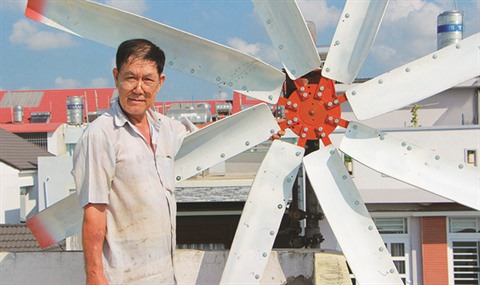 Une fois retraité, Lê Huu Bá continue ses recherches. Avec ses économies, il achète près de 3.000 m² de terre où il plante des arbres fruitiers. Se pose alors cette épineuse question de l’arrosage. Après bien des nuits blanches à étudier des documents sur les énergies vertes, il décide de créer une éolienne. "J’ai d’abord pensé à l’énergie solaire. Mais la construction coûte chère, beaucoup plus que l’énergie éolienne", avoue-t-il.
