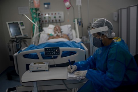 | Une infirmière dans une unité de soins intensifs à Marica, dans la région de Rio de Janeiro le 5 juin. |