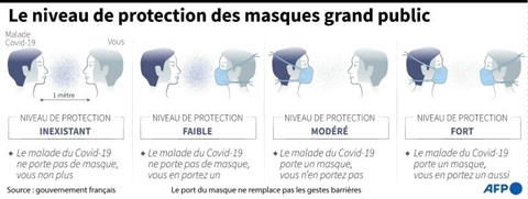| Graphique expliquant schématiquement le niveau de protection offert par les masques grand public. |