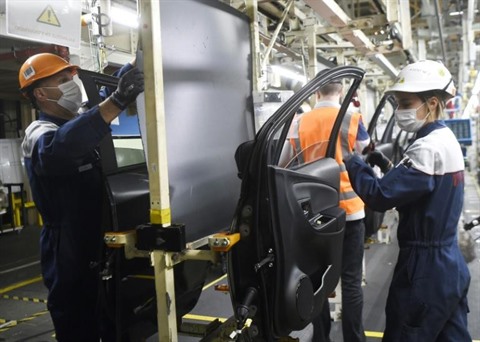 | Des employés au travail dans l'usine Toyota d'Onnaing (Nord), le 21 avril. |