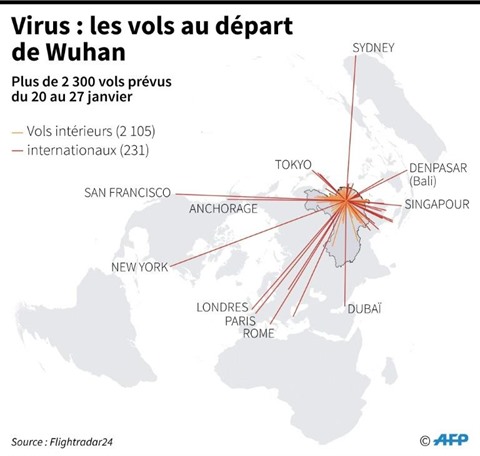L'épidémie intervient à l'approche des festivités du Nouvel An chinois, la période la plus chargée de l'année dans les transports. Des centaines de millions de personnes ont commencé à voyager en autocar, train et avion pour rendre visite à leur famille. L'année du Rat débute samedi 25 janvier.