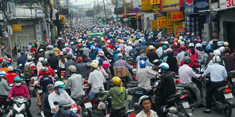 | Un embouteillage à l’heure de pointe dans la rue Lê Trong Tân, à Hô Chi Minh-Ville. |