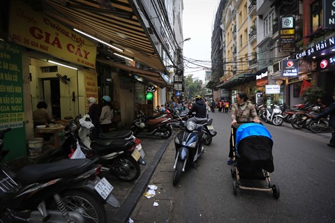 | Le nombre excessif de motos encombre les trottoirs à Hanoï. |