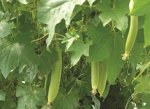 C’est une plante grimpante annuelle à larges feuilles lobées, à fleurs femelles jaunes, produisant des fruits dont la forme rappelle quelque peu celle des courgettes.
