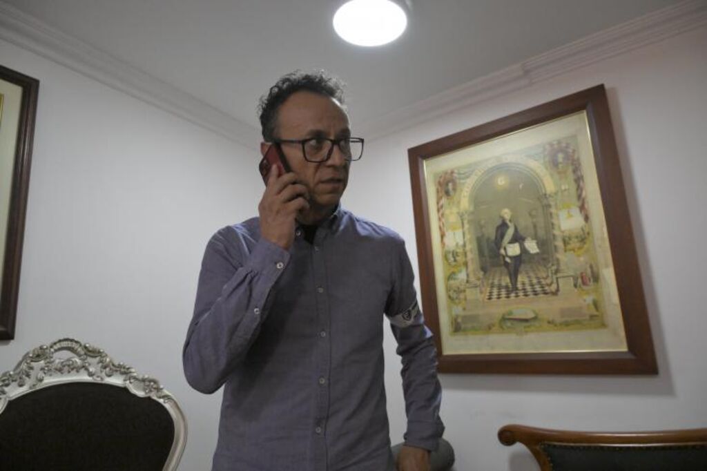 | Le journaliste et candidat centriste à la présidentielle en Équateur Christian Zurita, le 18 août dans son bureau à Quito. |