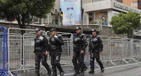 | Des soldats devant le Conseil national électoral à Quito, en Equateur, le 1er avril 2017 |