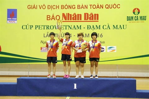 Le Championnat national de tennis de table du journal Nhân Dân - Coupe Petro-Phosphates Cà Mau de 2016 a réuni 138 pongistes de 33 équipes, dont 16 équipes féminines.