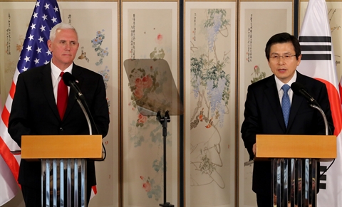 Le vice-président américain Mike Pence s'exprimait lors d'une conférence conjointe avec le Premier ministre sud-coréen Hwang Kyo-ahn, président par intérim depuis la destitution de la présidente Park.