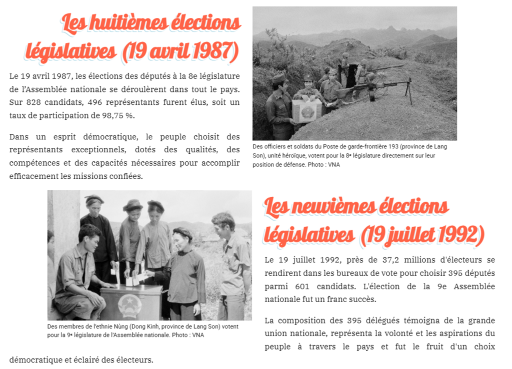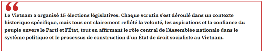 Ces élections constituent un événement historique majeur, marquant le début de la construction d’un nouveau régime démocratique et la naissance et le développement de l’Assemblée nationale, institution pilier de l’État de droit du peuple, par le peuple et pour le peuple.