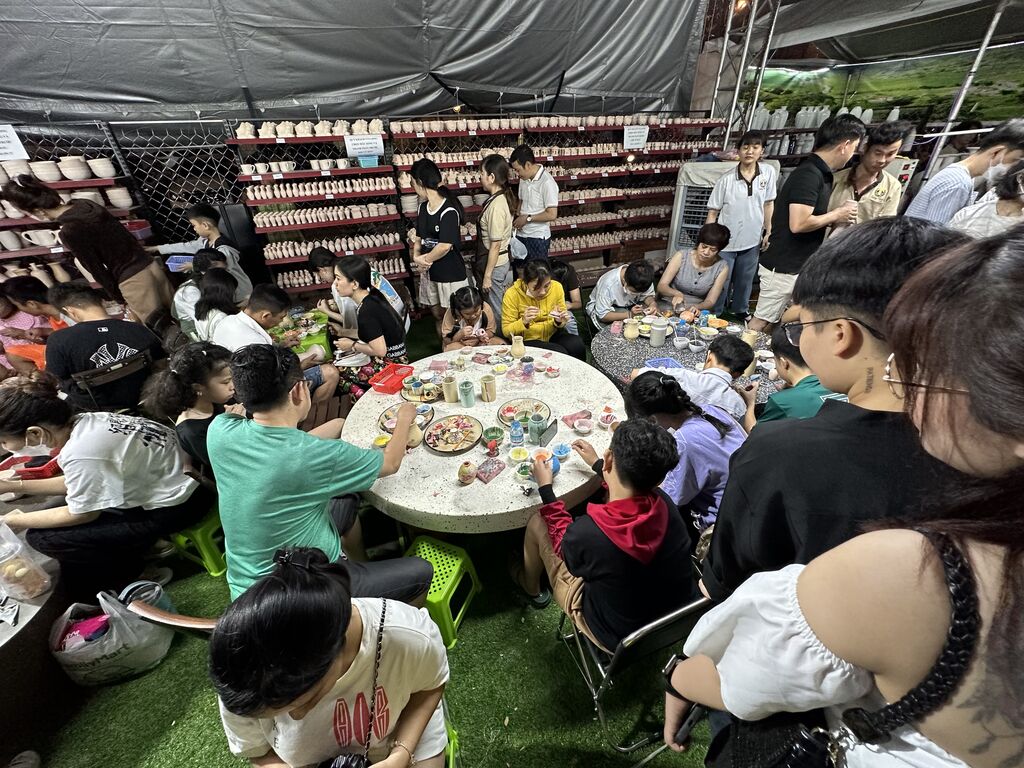 | Des enfants participant à la peinture sur les produits céramiques. |