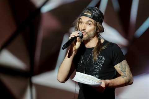 | Le chanteur de Shaka Ponk, Frah, pendant les Victoires de la musique, le 8 février. |