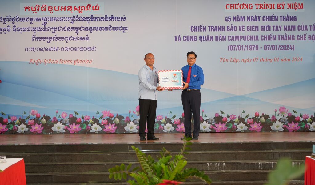 À cette occasion, le comité d’organisation de la rencontre a remis des cadeaux à dix familles de martyrs, invalides et malades de guerre, vétérans, anciens volontaires, anciens experts et personnes ayant rendu des services méritoires dans la guerre de défense de la frontière sud-ouest du Vietnam, et des cadeaux aux délégations des représentants de Svay Rieng et Tbong Khmum.