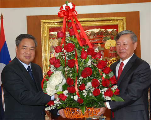 Plusieurs hautes délégations du Laos sont allées mardi 3 février à l'ambassade du Vietnam à Vientiane pour féliciter le 85e anniversaire de la fondation du Parti communiste du Vietnam.