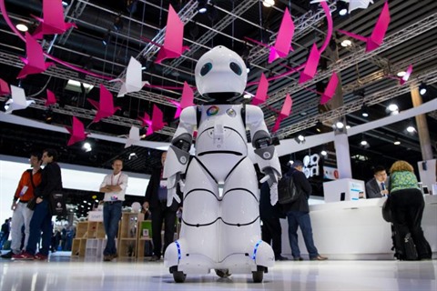 | Un robot au stand d'une compagnie de télécoms chinoise au Congrès mondial de Barcelone, le 28 février. |