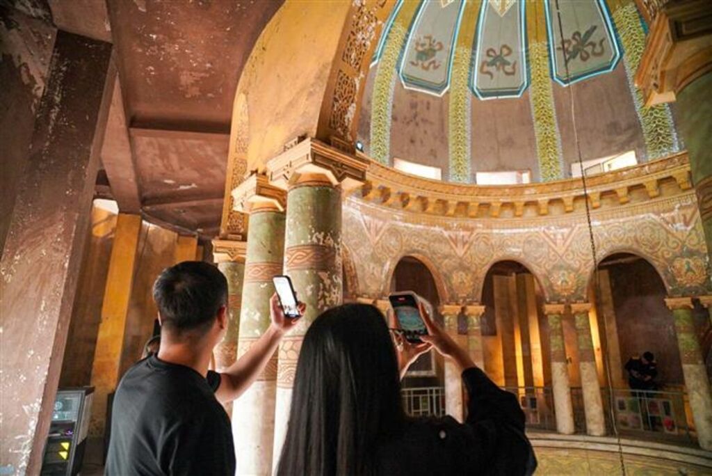 L’installation "Aurore" mélange la lumière, la couleur et les matériaux de construction écologiques de Viglacera pour créer une expérience artistique captivante.