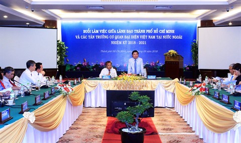 | Rencontre le 3 août à Hô Chi Minh-Ville entre les autorités municipales et les nouveaux chefs des agences de représentation vietnamiennes à l'étranger. |
