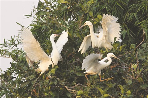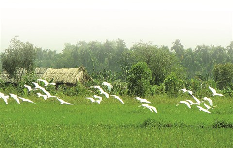 | Des aigrettes blanches dans la campagne vietnamienne. |