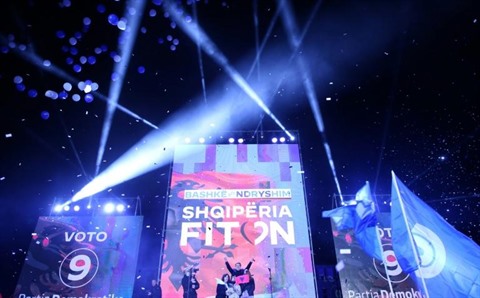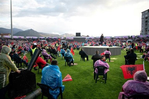 | Meeting de campagne du Premier ministre albanais Edi Rama, le 20 avril 2021 à Tirana. |