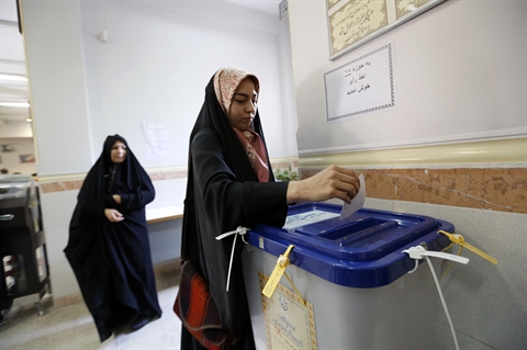 | Dans un bureau de vote, le 29 avril à Téhéran, en Iran. |