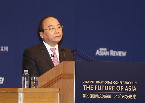 | Le Premier ministre Nguyên Xuân Phuc prenant la parole lors de la Conférence internationale sur l’avenir de l’Asie, le 5 juin à Tokyo. |