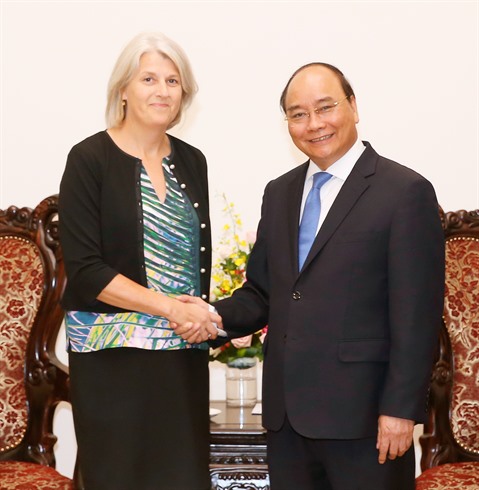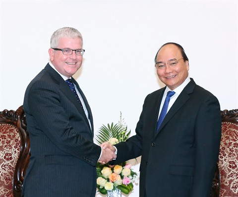 | Le Premier ministre Nguyên Xuân Phuc (droite) et l'ambassadeur d'Australie au Vietnam, Craig Chittick, lors d'une rencontre en novembre dernier. |