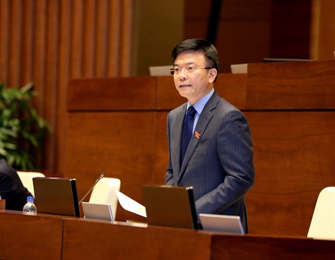 | Le ministre de la Justice, Lê Thành Long, lors de la séance plénière de l'Assemblée nationale, le 26 octobre à Hanoï. |