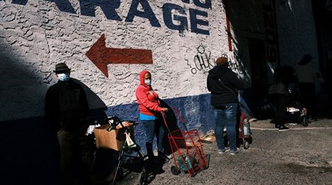 | Des gens font la queue devant une banque alimentaire d'une église du Bronx, à New York (États-Unis), le 7 janvier. |