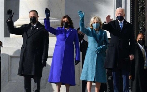 | De gauche à droite : Doug Emhoff, Kamala Harris, Jill Biden et Joe Biden, au Capitole, le 20 janvier. |