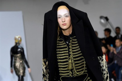 Autres nouveaux venus dans le programme parisien, les Belges Filip Arickx et An Vandevorst, mari et femme à la tête du label A.F. Vandevorst, ont utilisé des sacs poubelles et des emballages de pressing pour en faire des jupes et des robes finement brodées.