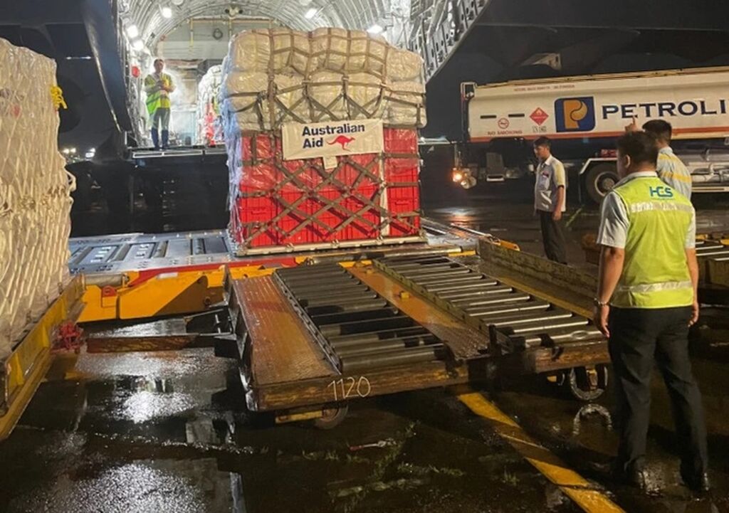 | L’Australie achemine par avion-cargo du matériel d’aide d’urgence vers l’aéroport international de Nôi Bài, à Hanoï. |