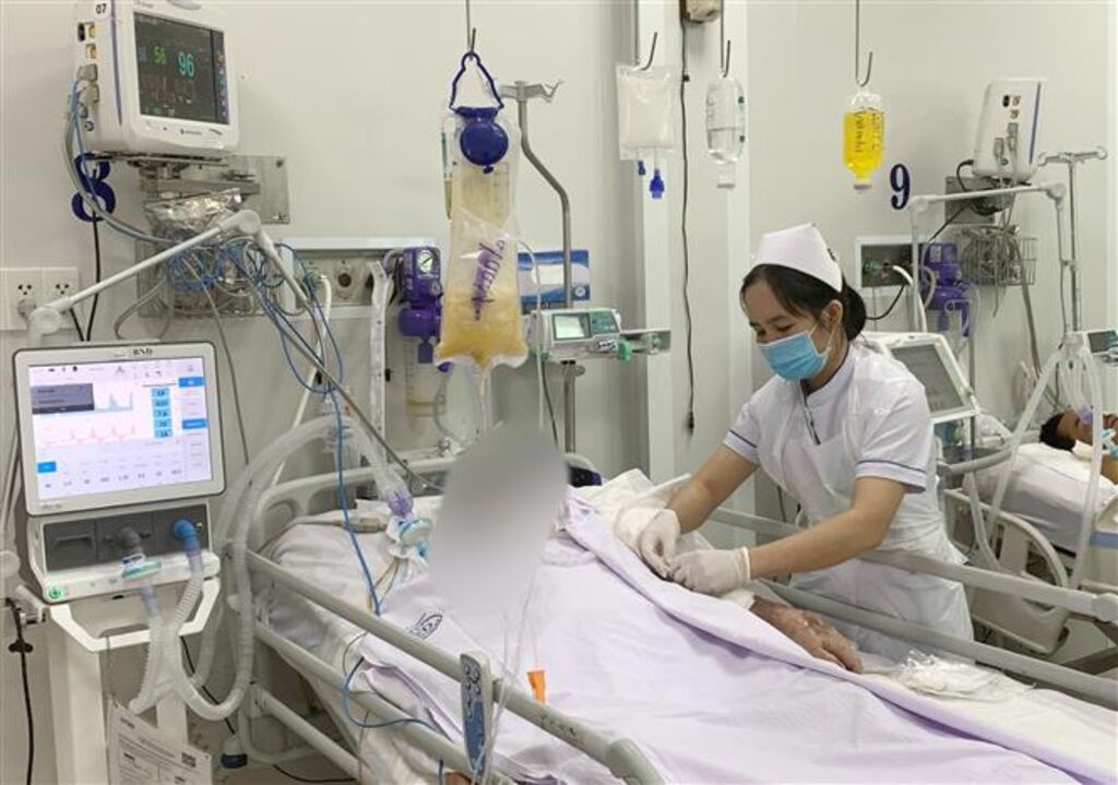 | Une agente médicale de l’hôpital Cho Rây, à Hô Chi Minh-Ville, s’occupe d’un patient atteint de botulisme. |