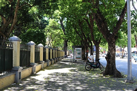 | Les pancoviers sur le trottoir de la rue Trân Phu à Hanoï. |