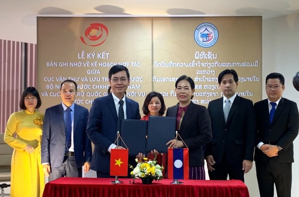 Les signataires sont Dang Thanh Tùng, directeur du Département de gestion des documents et des archives de l'État du Vietnam, et Thongchanh Keosenhom, directrice du Département national des archives du Laos.