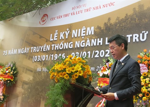 | Le directeur du Département d'État de la gestion des archives, Dang Thanh Tùng, lors de la célébration, le 25 décembre à Hanoï. |