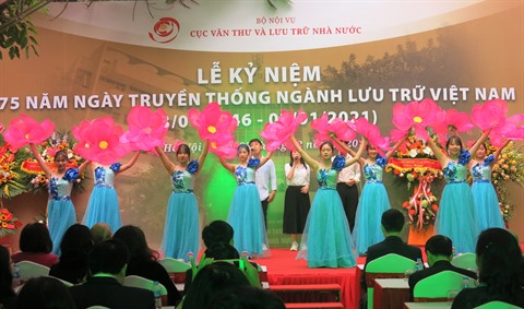 | Un numéro artistique lors de la célébration des 75 ans du secteur des archives, le 25 décembre à Hanoï. |
