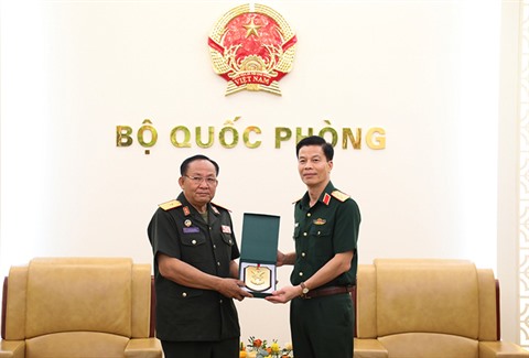 | Le chef d'état-major général adjoint de l'Armée populaire du Vietnam, Nguyên Trong Binh (droite), et le directeur de l’Académie de la défense Kaysone Phomvihane du Laos, Keosouvan Inthavongsa, |