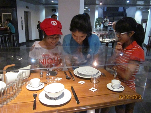 | Une table à manger à l'exposion d'Elizabeth Couturier, le 3 juillet à l'Espace - Institut français de Hanoi. |