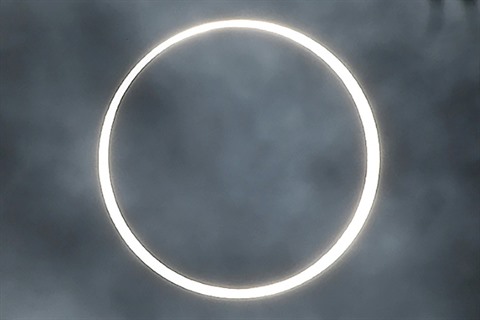 | L'éclipse "cercle de feu" telle qu'elle a pu être osbervée depuis la ville indienne de Dindigul. |
