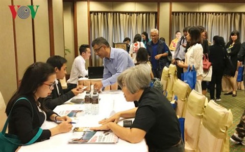 | Des agences de voyages vietnamiennes présentent leurs services à des Thaïlandais. |