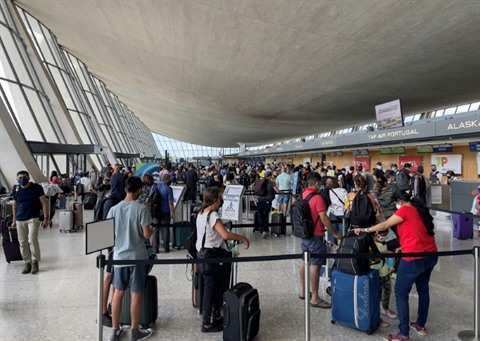 | Des passagers à l'aéroport international de Washington Dulles, en Virginie, le 14 août. |