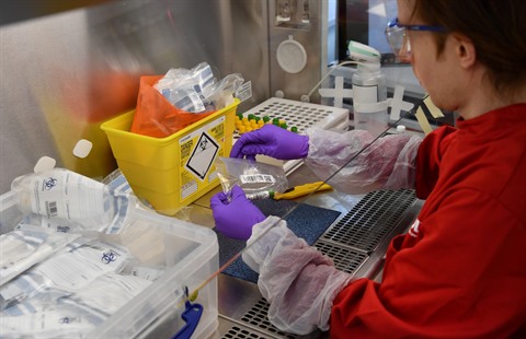 | Dans le laboratoire à Leeds au Royaume-Uni, le 22 avril. |