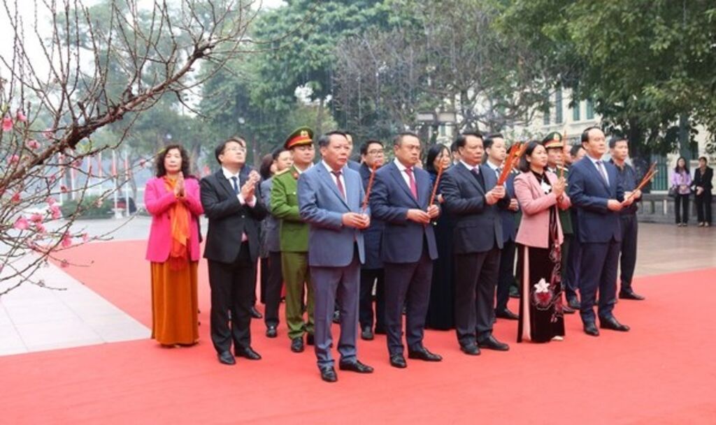 Une délégation du Comité du Parti, du Conseil populaire, du Comité populaire et du Comité municipal du Front de la Patrie de Hanoï, dirigée par le membre du politburo et secrétaire du Comité municipal du Parti, Dinh Tiên Dung, est allée le 21 janvier offrir de l'encens à la statue du roi Ly Thái Tô, au temple Ngoc Son, à la statue du roi Lê Thái Tô, au palais Kinh Thiên et au Président Hô Chi Minh dans la Maison 67 à Hanoï.