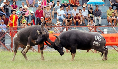 | Pour commémorer Câu, chaque année, à Dô Son, les habitants locaux organisent des combats de buffles. |