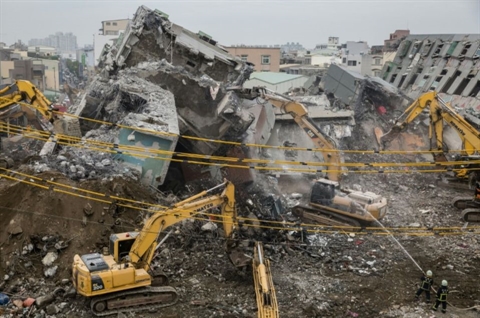 | Des secouristes fouillent les ruines de l'ensemble immobilier Wei-kuan détruit par un séisme, le 10 février à Taïwan. |