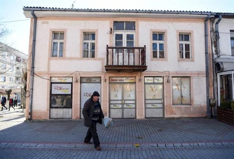 | Une rue de Valandovo, en Macédoine du Nord, le 20 décembre 2021. |