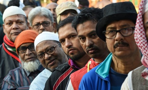 | Des électeurs dans une file d'attente devant un bureau de vote de la capitale bangladaise Dhaka, le 30 décembre. |