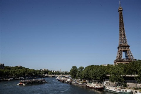 | Un bateau de touristes navigue sur la Seine, près de la Tour Eiffel, le 13 juin à Paris |