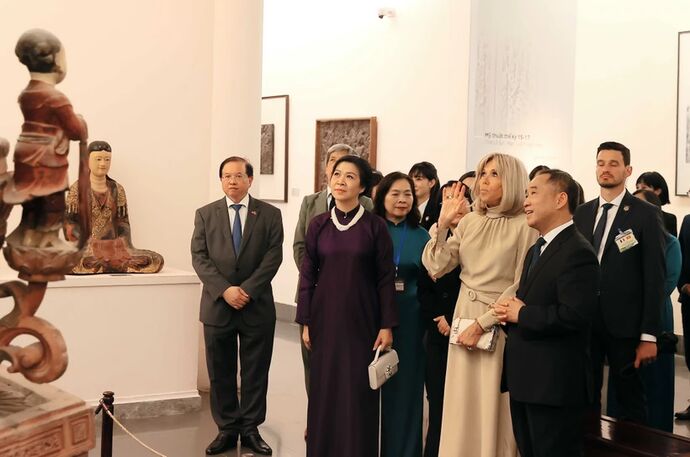 >> L’épouse du secrétaire général du PCV et la Première dame de France célèbrent l’art vietnamien